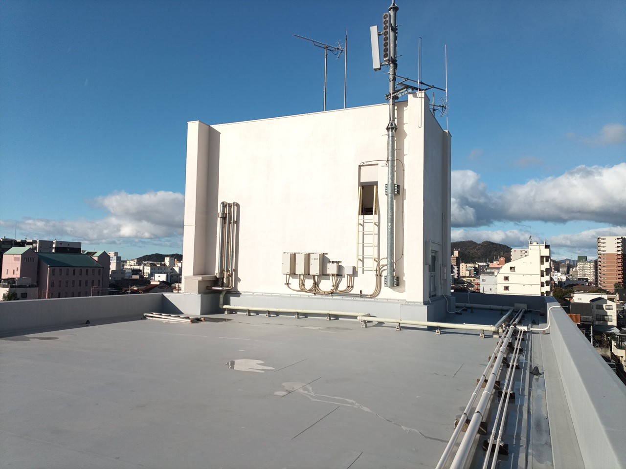 外壁5,135㎡、防水2,010㎡の小学校4階建ての外壁改修工事をさせていただきました。